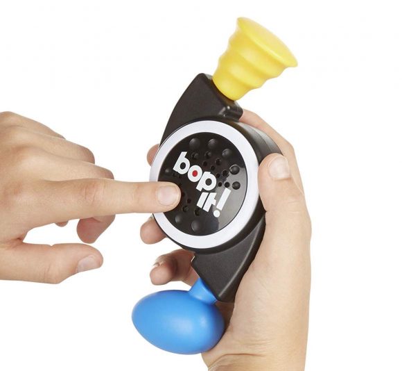 Bop it! Twist it! Pull it! Everyone loves the classic game of Bop It and now you can enjoy it anywhere with the micro series Bop It. This never ending game that tells you a series of commands is a blast, perfect for killing time at home or work.